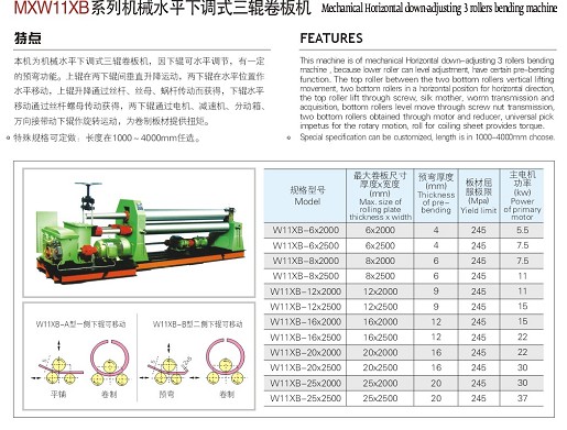 MXW11XB系列機(jī)械水平下調(diào)式三輥卷板機(jī)